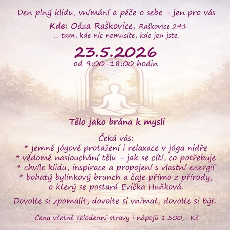 S radostí vás zveme na krásné propojení, které vzniklo i díky našemu přátelství s kamarádkou – celodenní zastavení s jógou