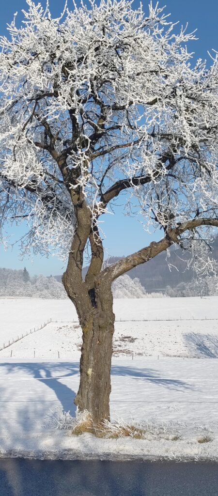 Venku stále seděla na trůnu paní Zima. Mráz ukazoval svou sílu, ale i svou krásu. Obalil přírodu do stříbrného ticha, stromy oděl do třpytivého kabátku a okna pokreslil křehkými ledovými květy. Vítr tomu všemu dodával na síle, proháněl se ulicemi a štípal do tváře.
